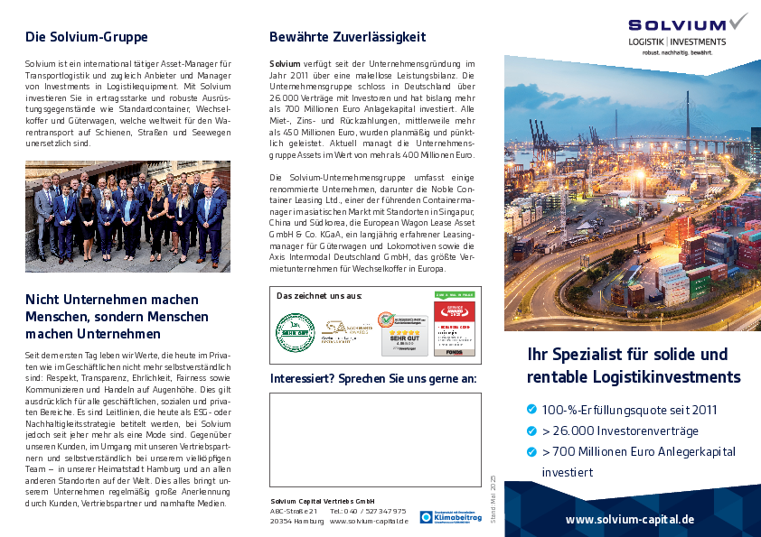 auf dieser Seite stellen wir Ihnen allgemeine Informationen zur Solvium zum Download zur Verfügung.